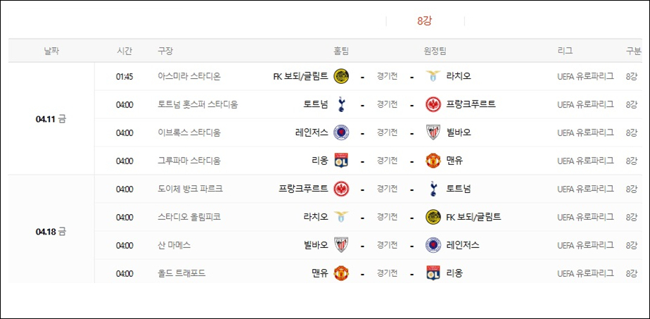 UEFA 유로파리그 8강 일정을 확인 하시고 응원하는 팀에 힘을 더 해주시면 좋을 것 같습니다!