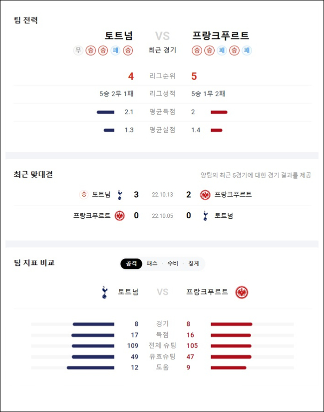 ⚽ 토트넘 홋스퍼 vs 아인트라흐트 프랑크푸르트