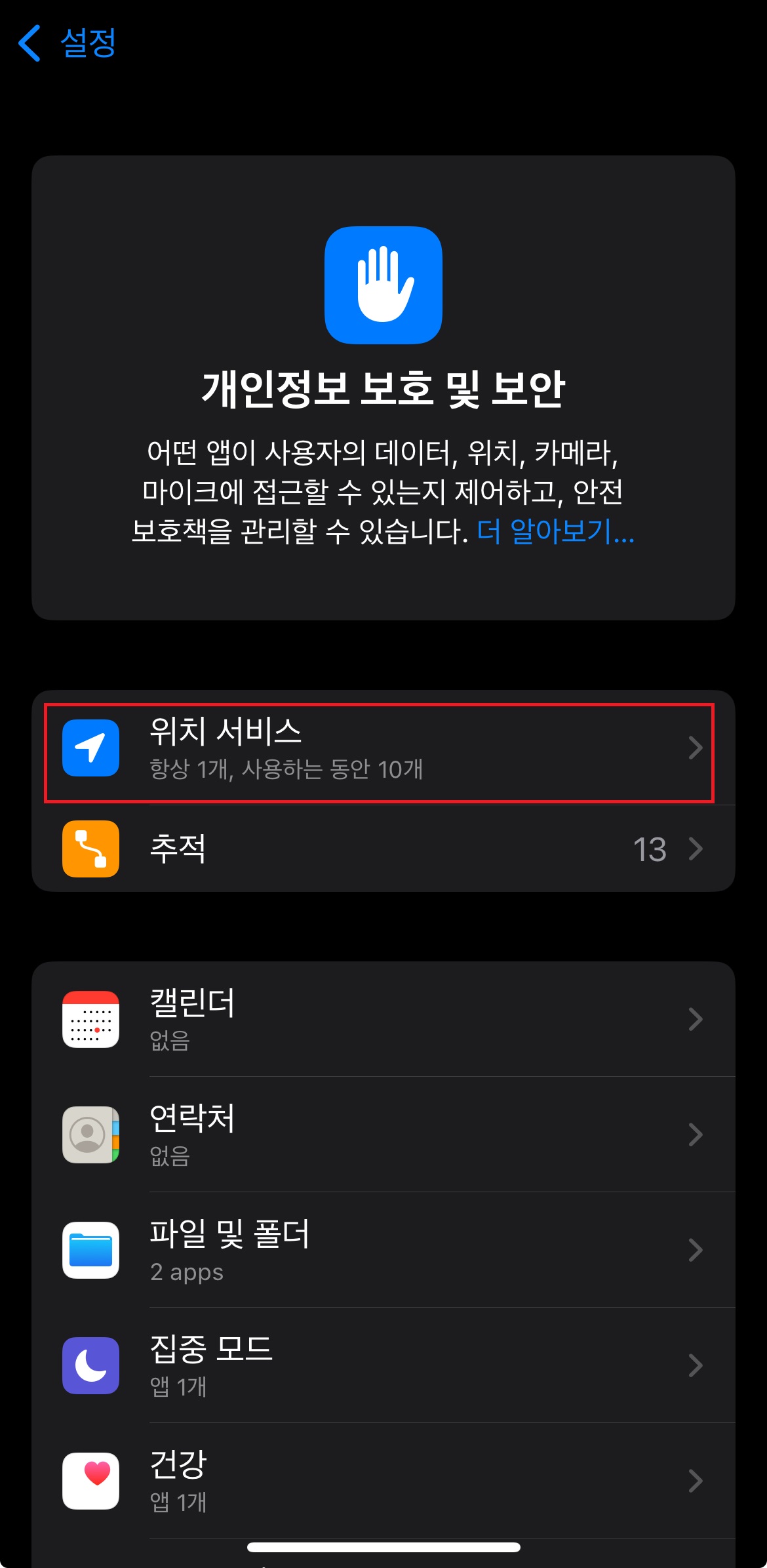 📌 설정 → 개인 정보 보호 및 보안 → 위치 서비스