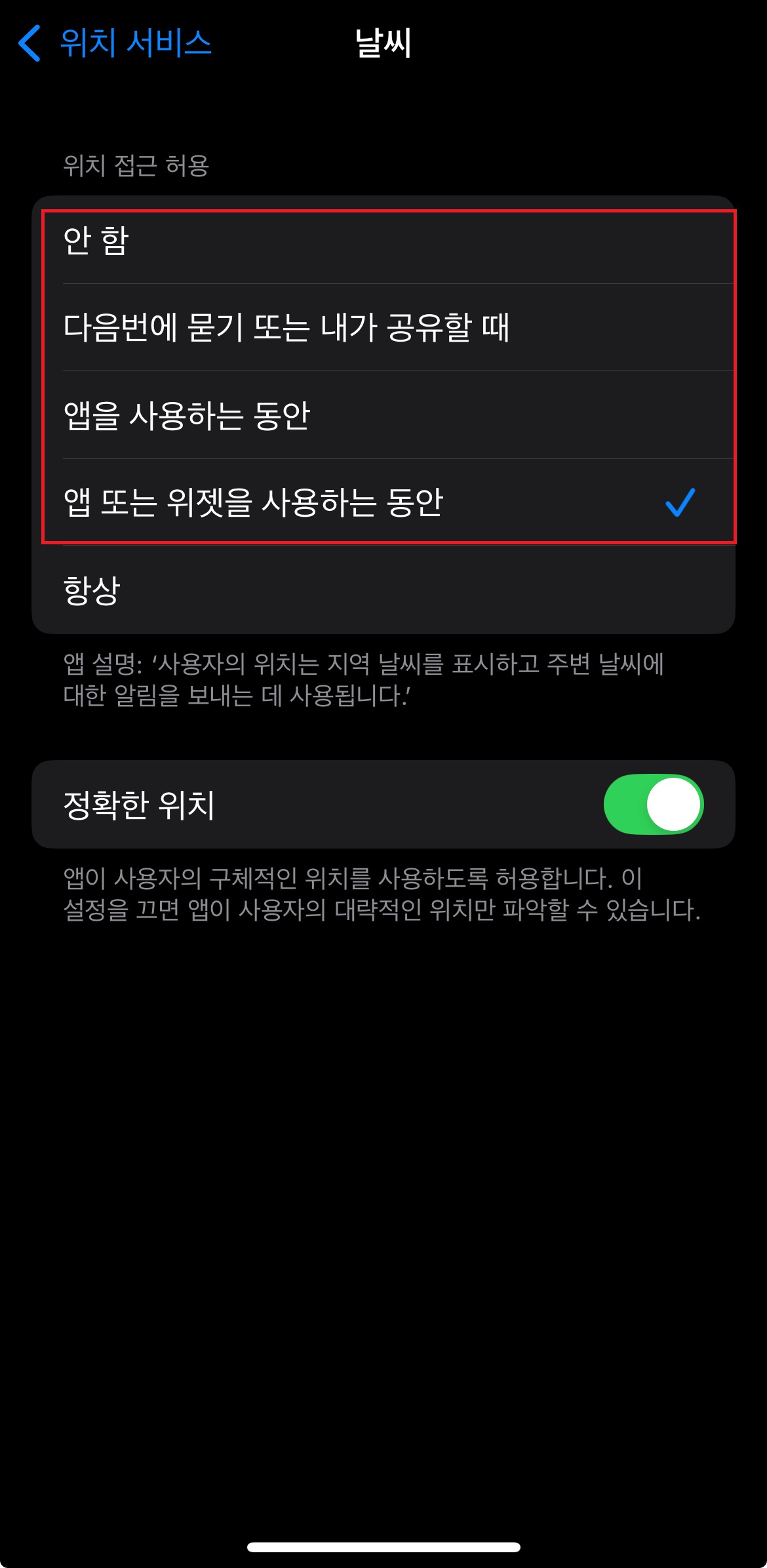 ✅ 위치 서비스 불필요한 앱 제한