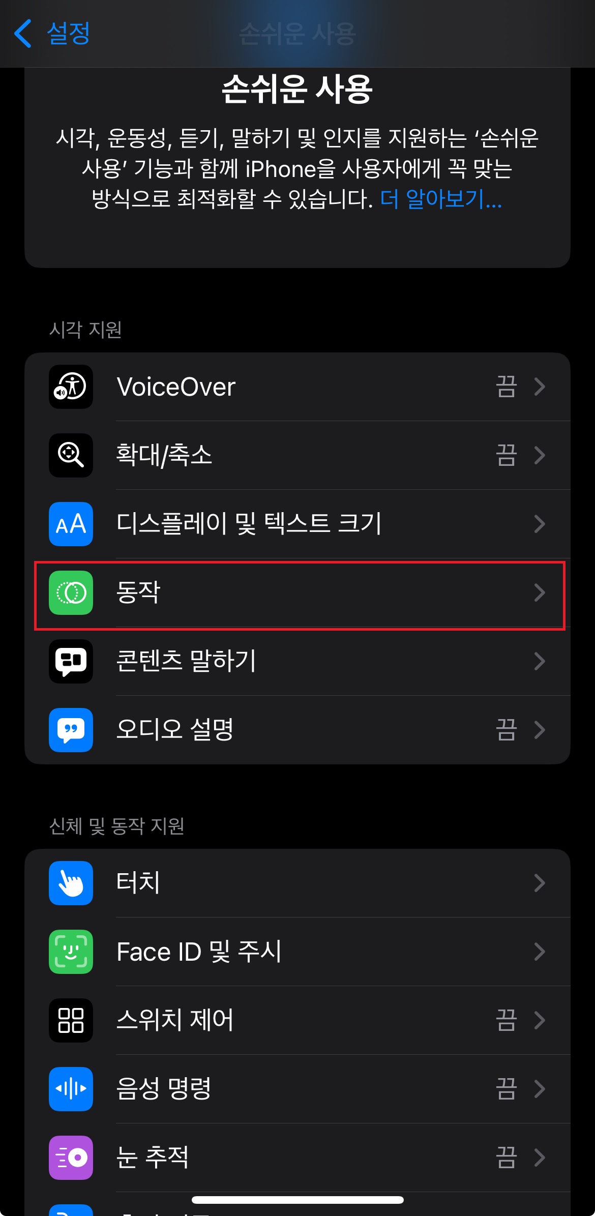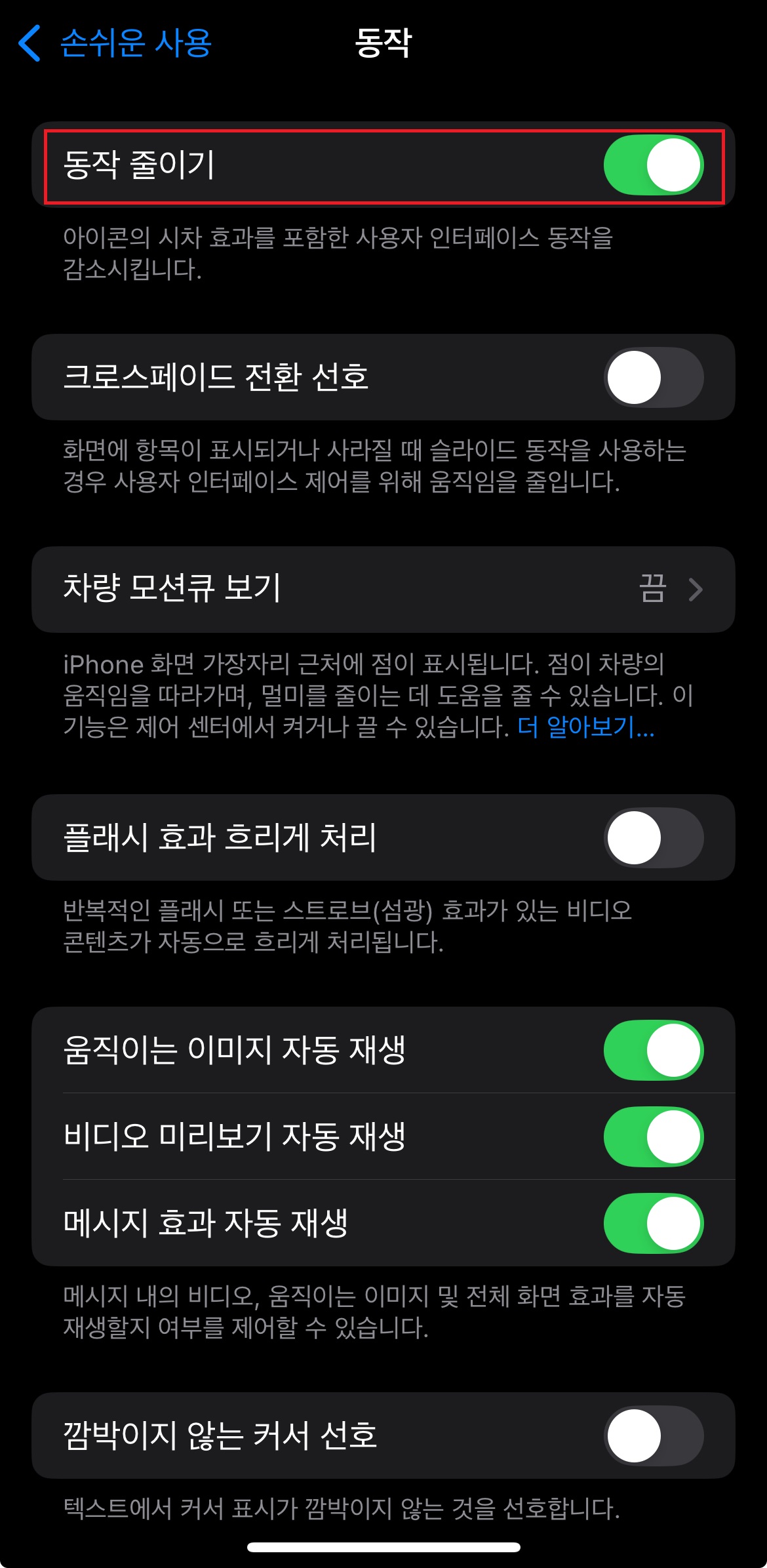 ✅ 동작 줄이기 설정 활성화 (애니메이션 최소화)