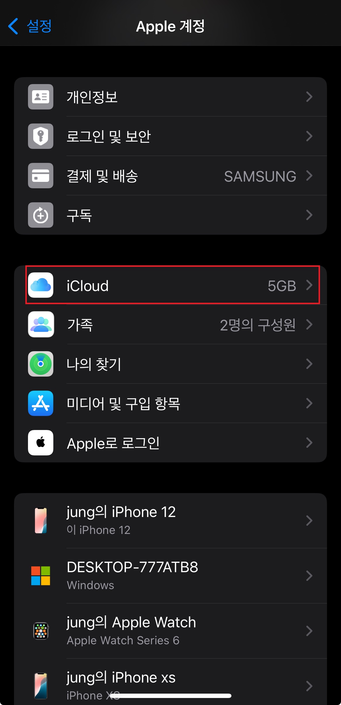 📌 설정 → [사용자 이름] → iCloud → iCloud 백업