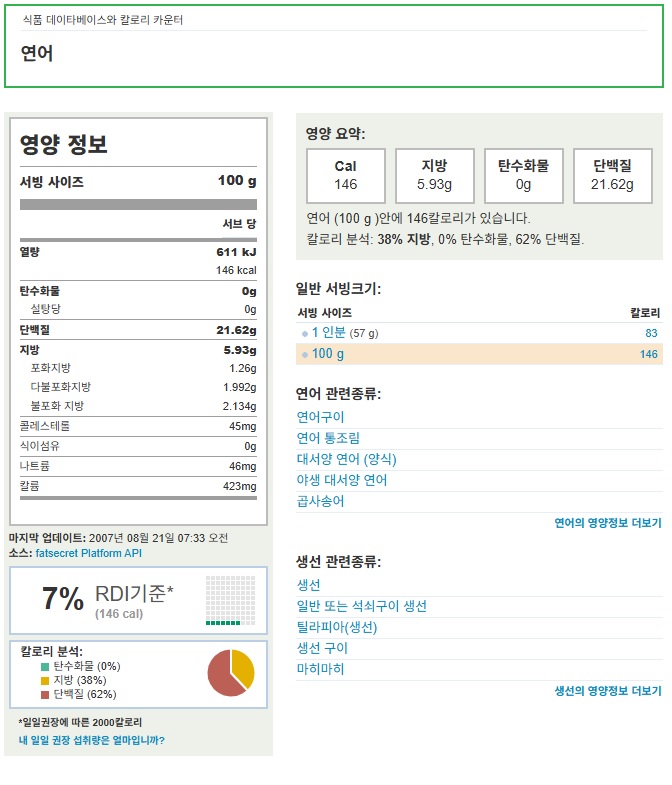 연어 식품데이터 베이스