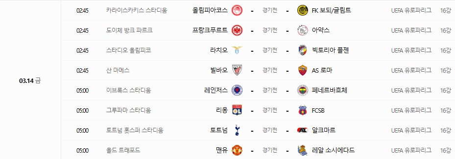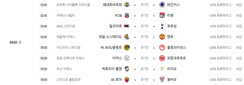 📌 24-25 유로파리그 16강전 일정 & 대진표 :