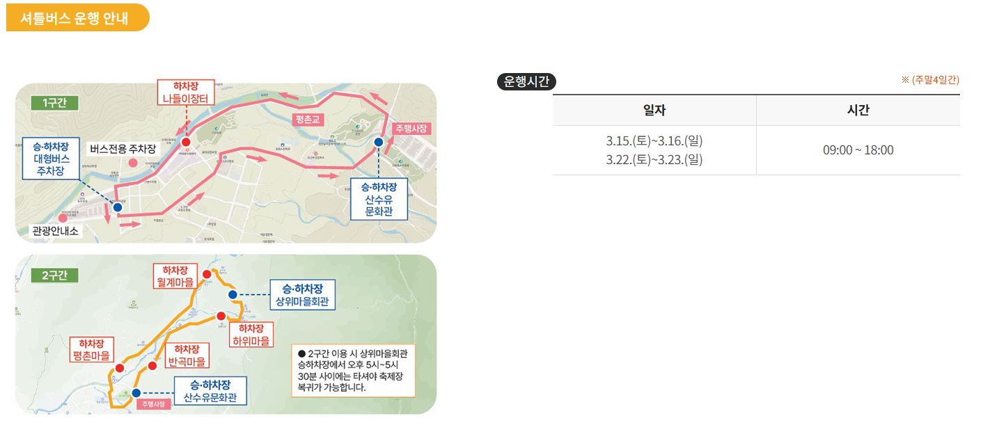 - 구례구역 → 축제장 (셔틀버스 또는 택시, 약 15분 소요)