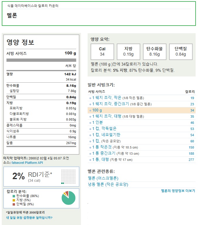 멜론 식품데이터베이스