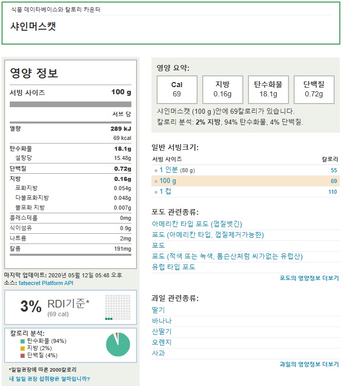 식품데이터베이스 - 샤인머스캣