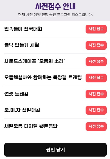 축제 방문전 미리 참여하고 싶은 프로그램은 사전 접수 꼭 하시고 행사를 더 재밋게 즐겨보세요!
